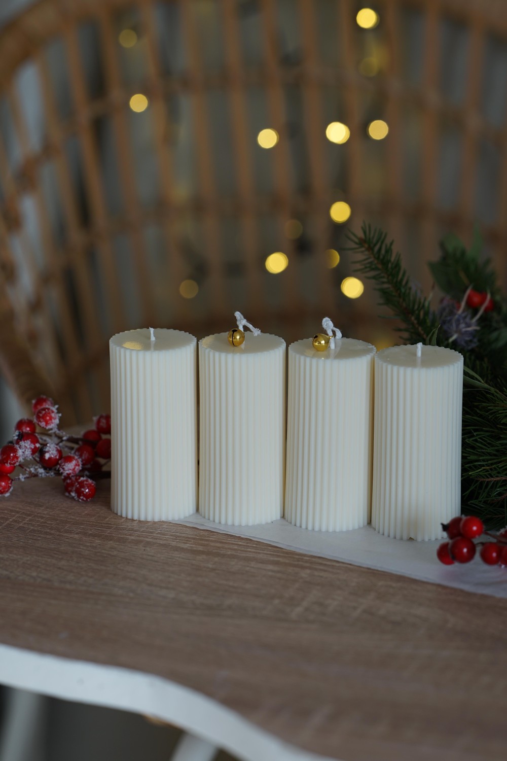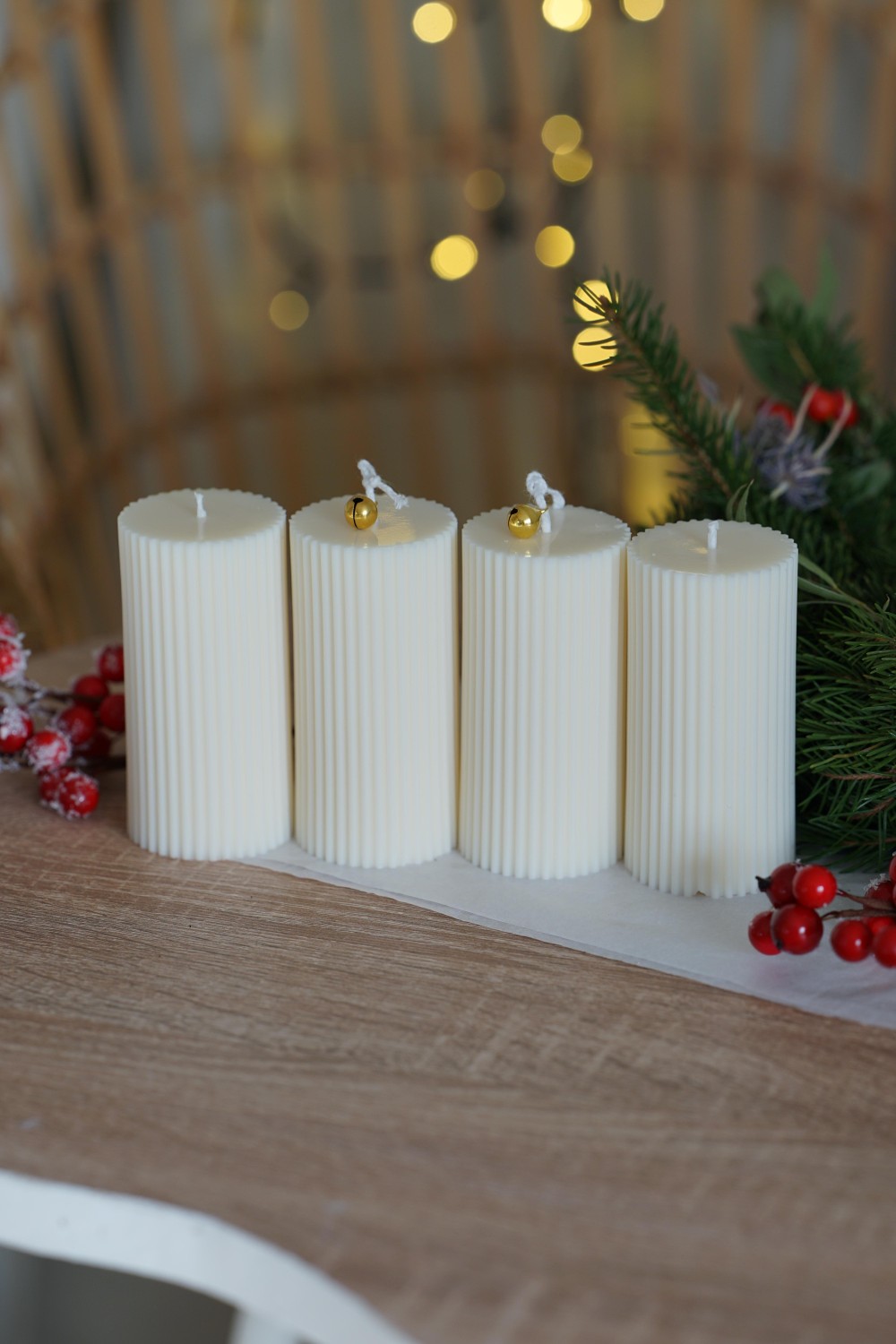 Enjoy the magical Advent and Christmas season with our hand-crafted candles made from pure soy wax. The Amari candle in medium size, in a beautiful white shade, features a cone shape with subtle ridges all around its surface. The set includes 4 soy wax candles, perfect for your Advent wreaths and festive arrangements.