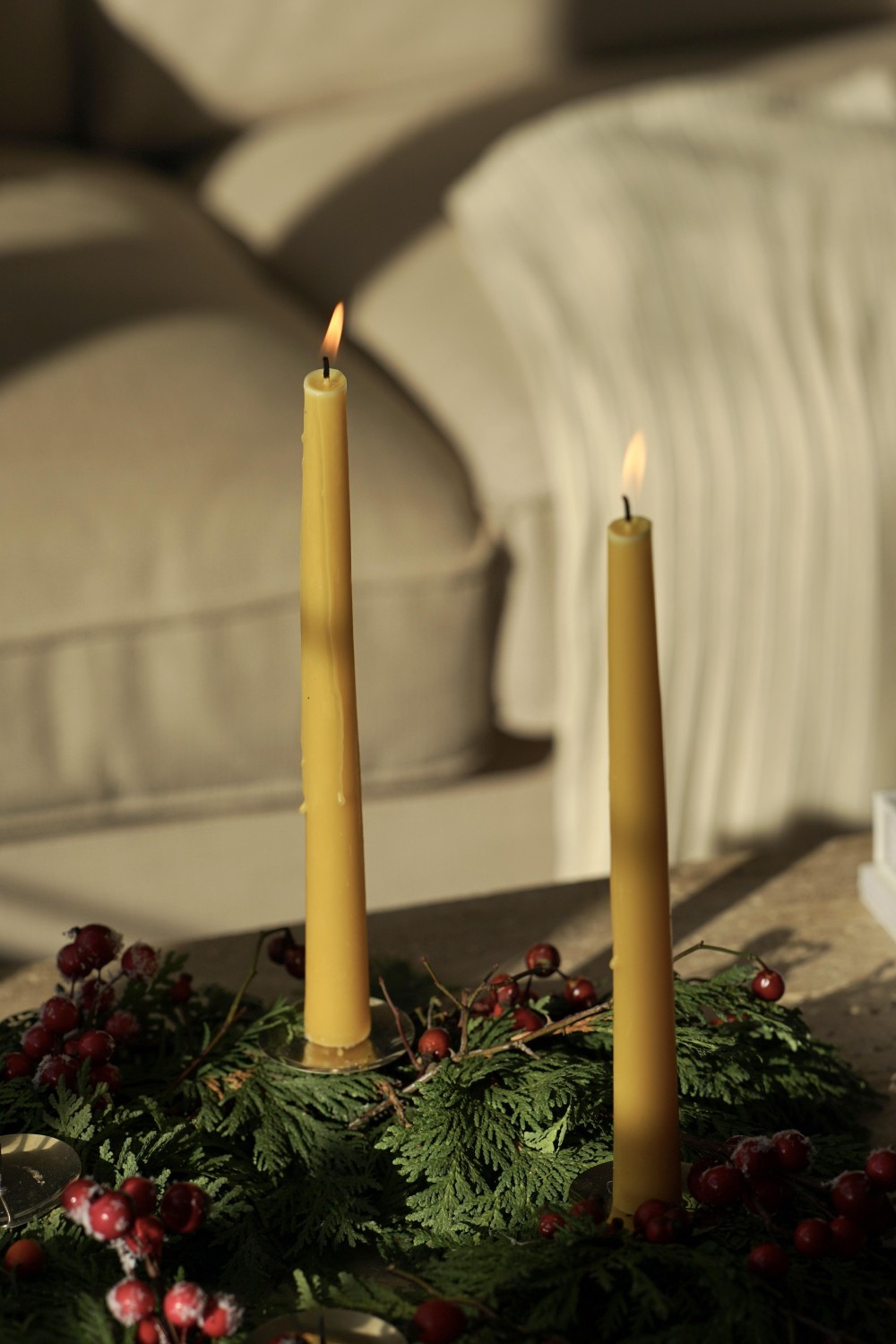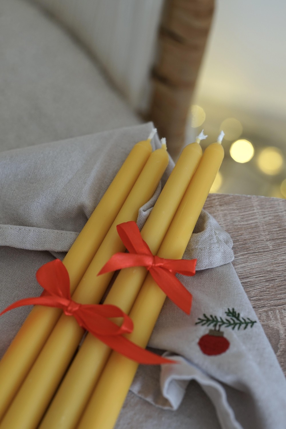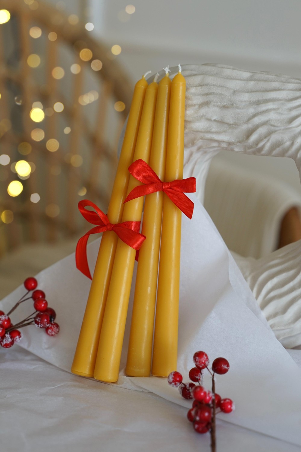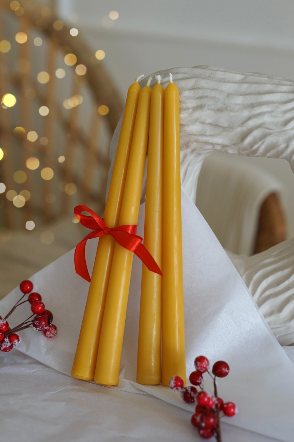 Enjoy the magic of the Advent season with our handcrafted candles. These candles are made from pure beeswax, filling your home with a gentle honey aroma. Eleni is tall and tapered, finishing with a rounded top. The set includes 4 beeswax candles for your Advent wreaths and festive decorations.