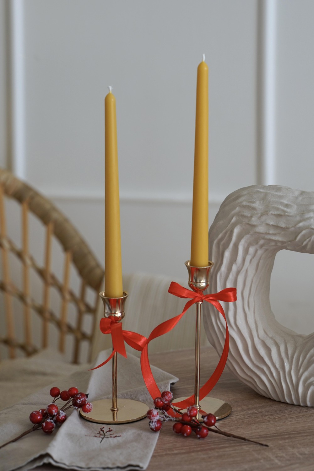 Height: 25.5 cm | Width: 2–1 cm | Weight: 1 pc 60 g beeswax | Color: yellow
