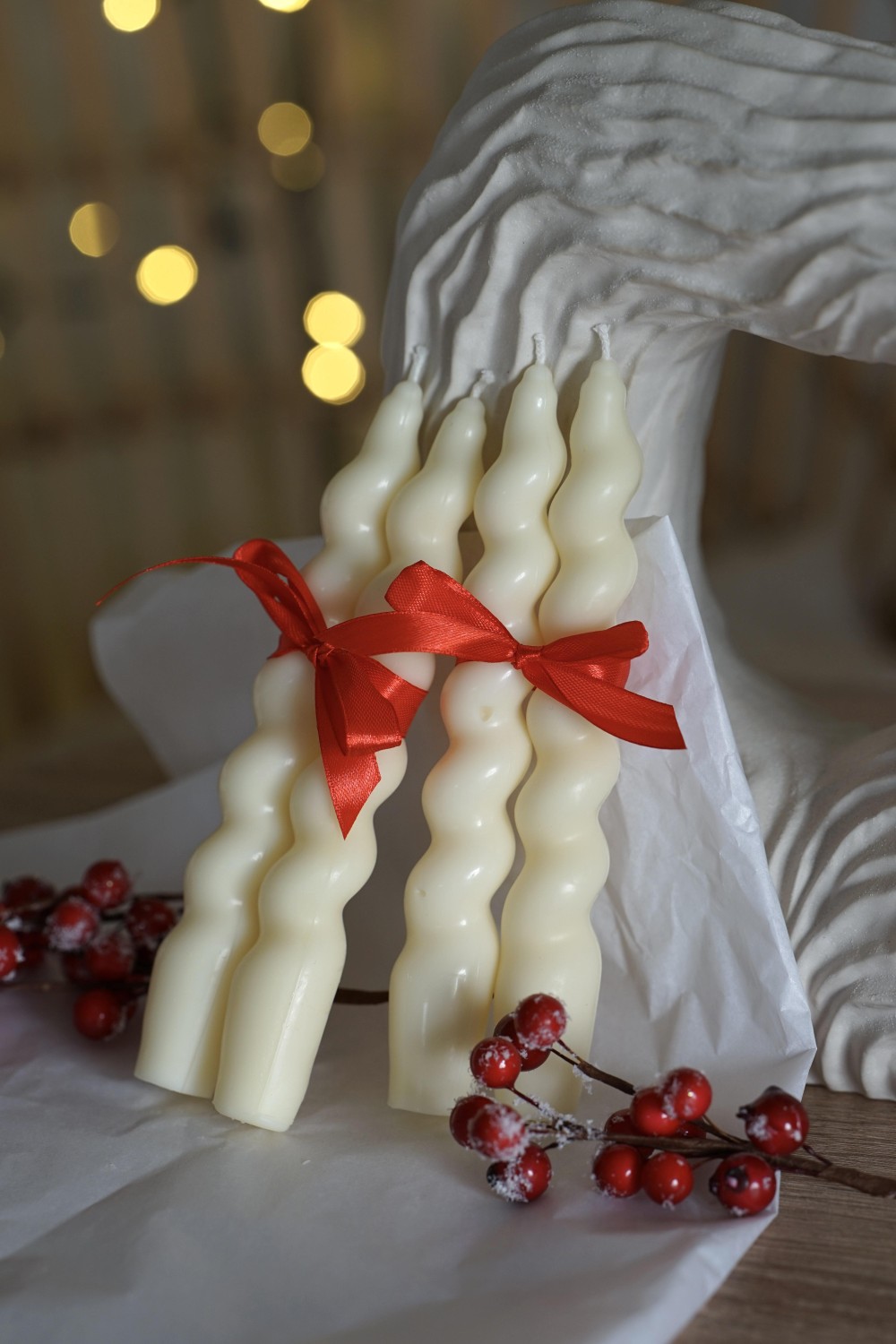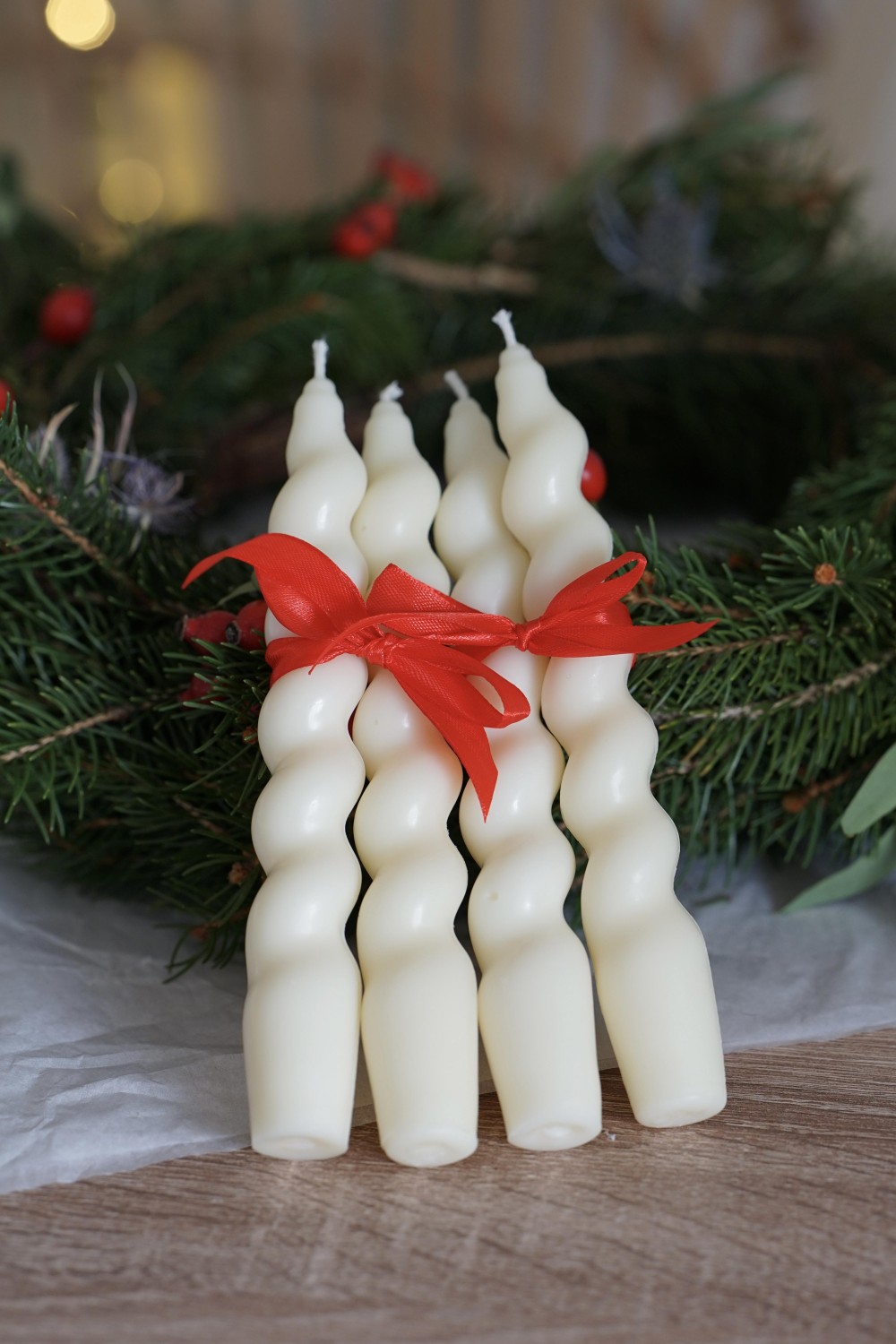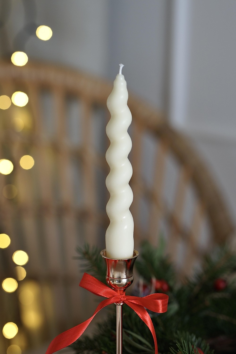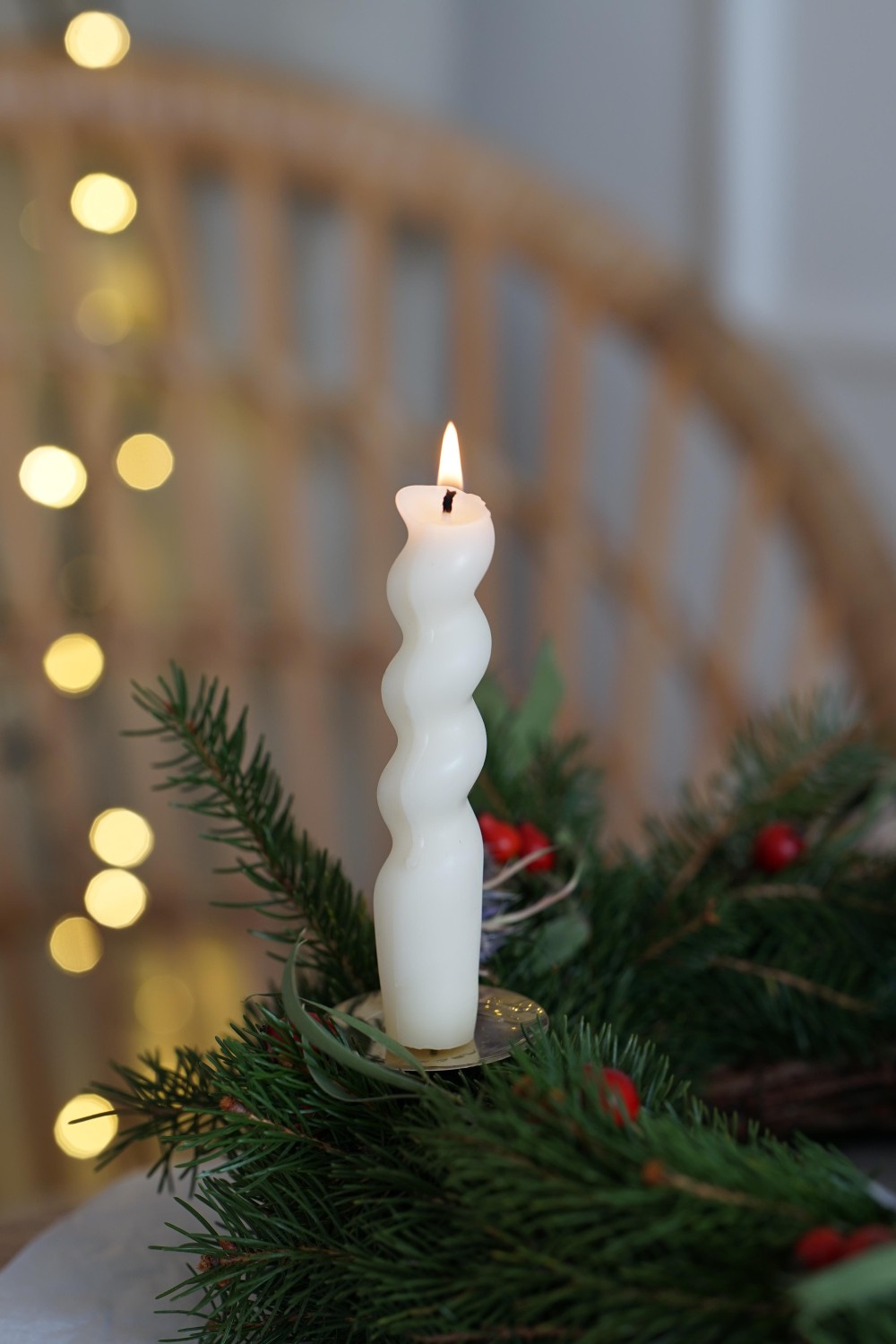 Enjoy the magic of the Advent season with our handcrafted candles. These candles are made from a blend of white beeswax and soy wax in a beautiful white shade. Sofia is a tall, elegantly twisted candle. The set includes 4 candles made from a mixture of beeswax and soy wax for your Advent wreaths and festive arrangements.