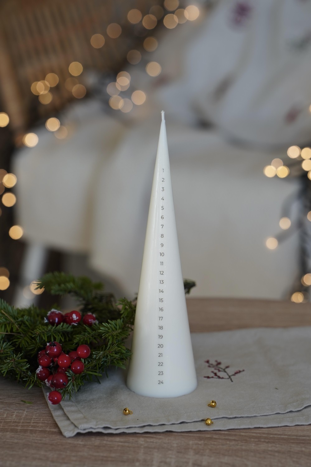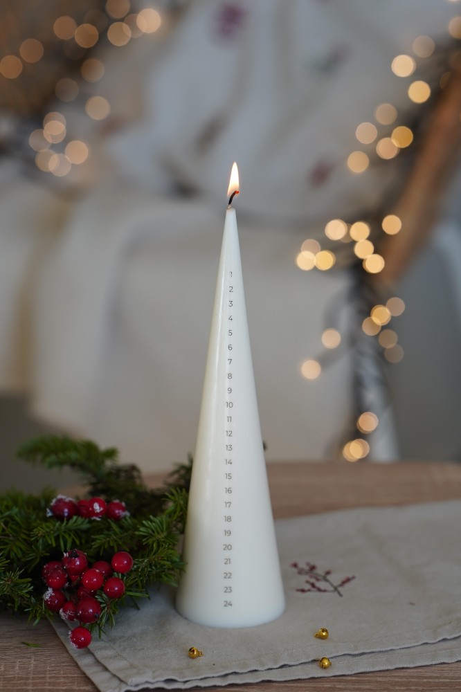 Count down the days to Christmas with the Advent Bodlinka candle, which resembles a minimalist Christmas tree. The candle is hand-poured from a blend of soy and white beeswax. Each day you can light the candle and let it burn down to the next number. This peaceful ritual will help you slow down amid the pre-Christmas rush and enjoy magical moments of anticipation. Numbers from 1 to 24 are gently marked along the entire length of the candle.