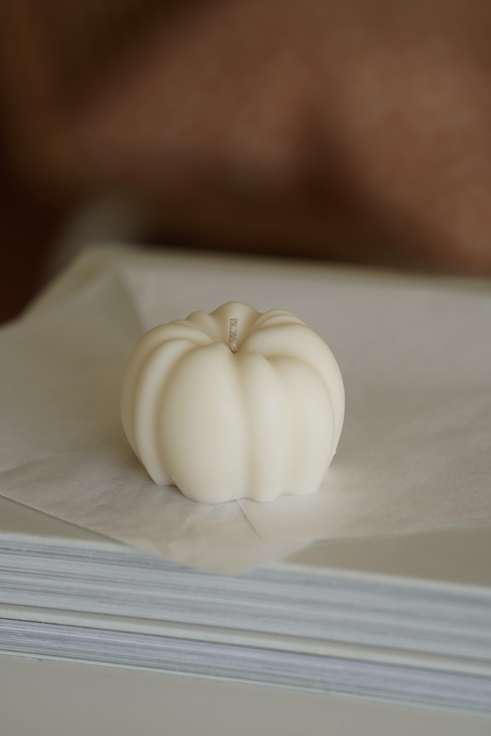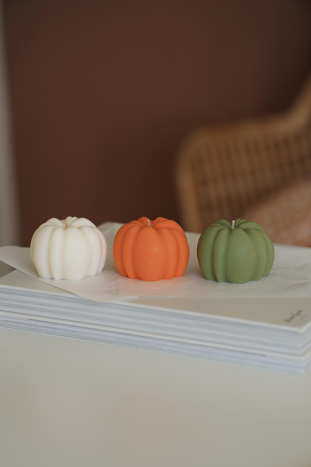 Welcome autumn and its magical atmosphere with our hand-poured pumpkin-shaped candle made from natural soy wax. Available in white, orange, or olive green, this charming little pumpkin will bring a cozy fall feeling into your home.
