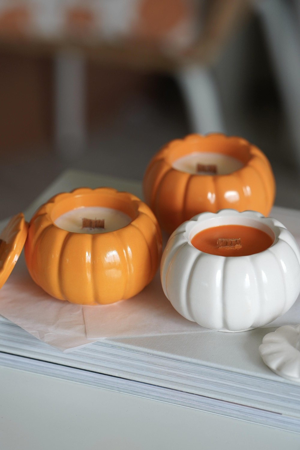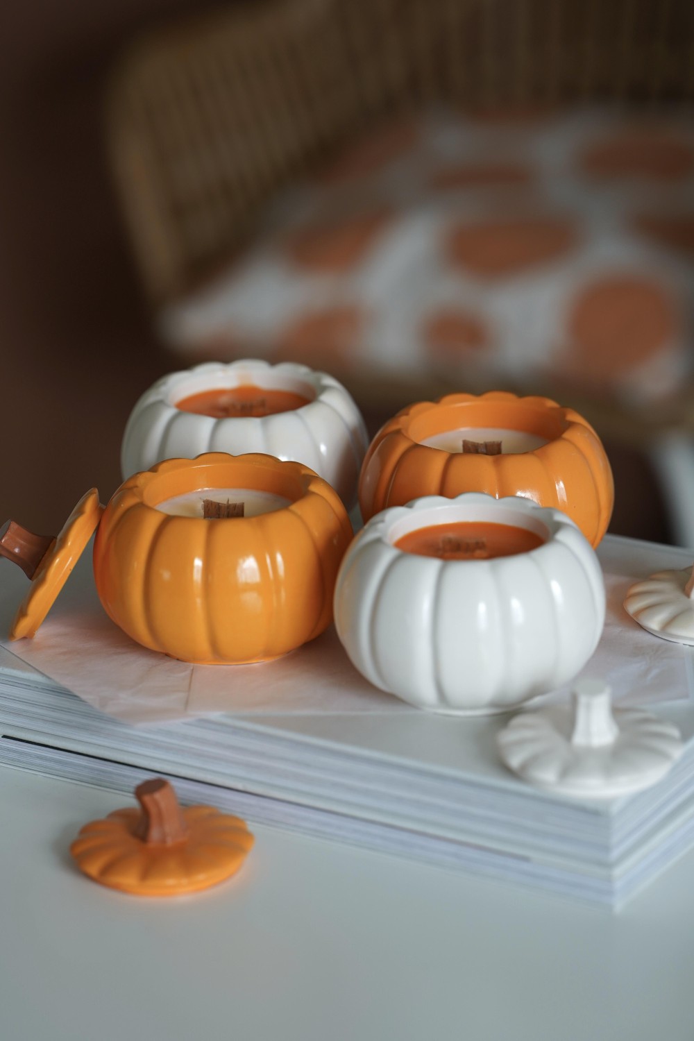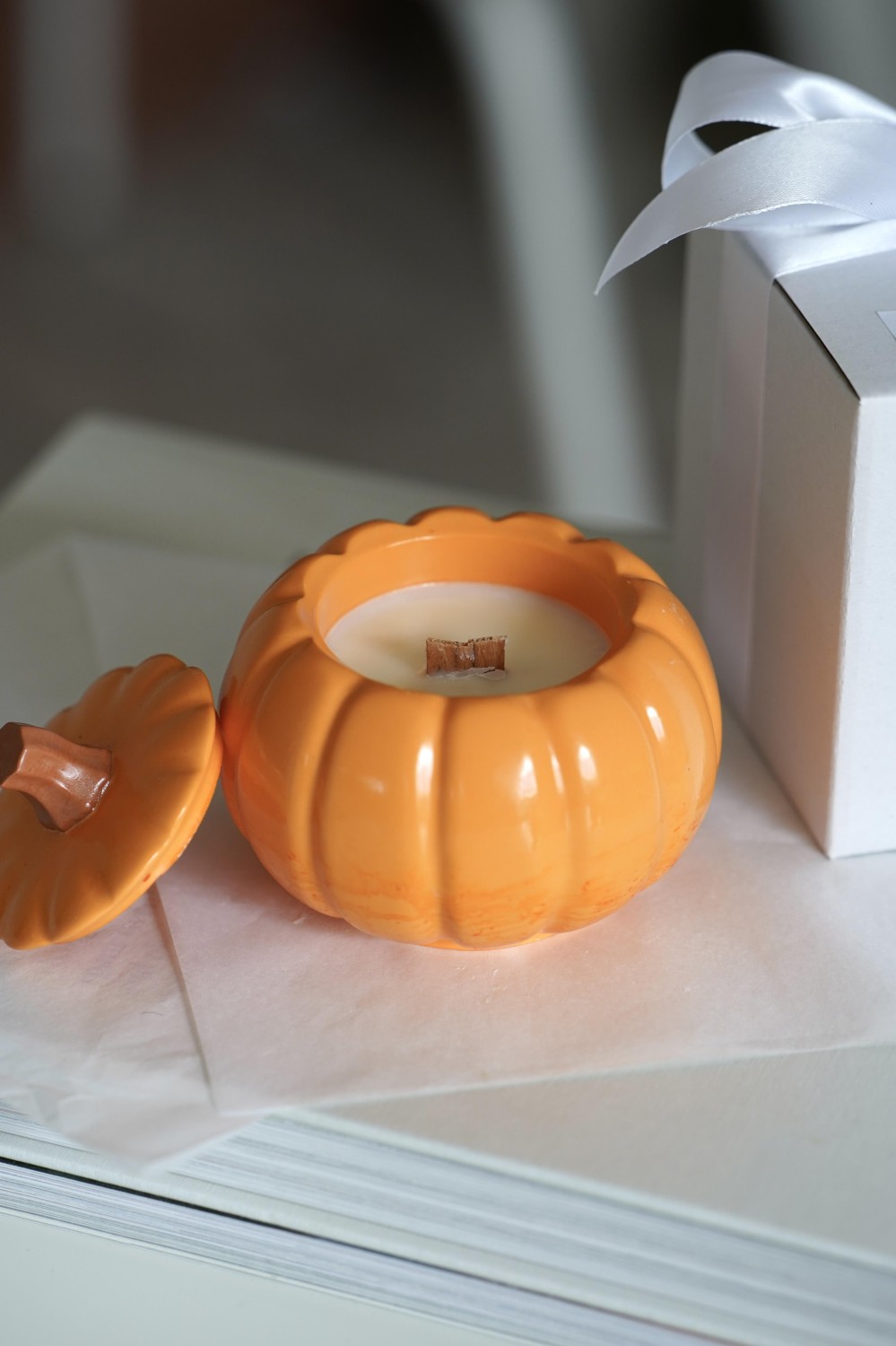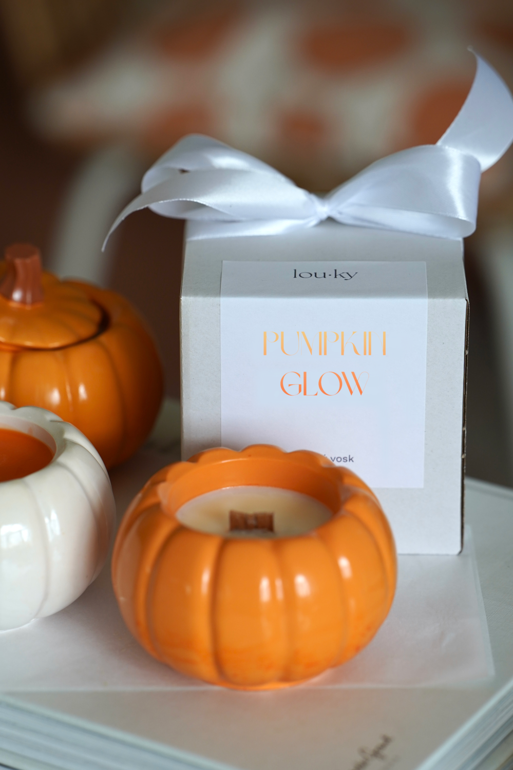 Meet our autumn candle, Pumpkin Glow — a cozy celebration of fall. Each candle is set in a handmade Jesmonite vessel in soft orange or creamy white tones, designed to resemble a pumpkin. Inside, you’ll find natural soy wax in matching hues, adorned with subtle gold shimmer and a crackling wooden wick. The scent combines juicy orange with warm ginger — a comforting fragrance that evokes autumn walks, spiced apple cider, and evenings curled up with a good book. Beautifully packaged in a gift box.