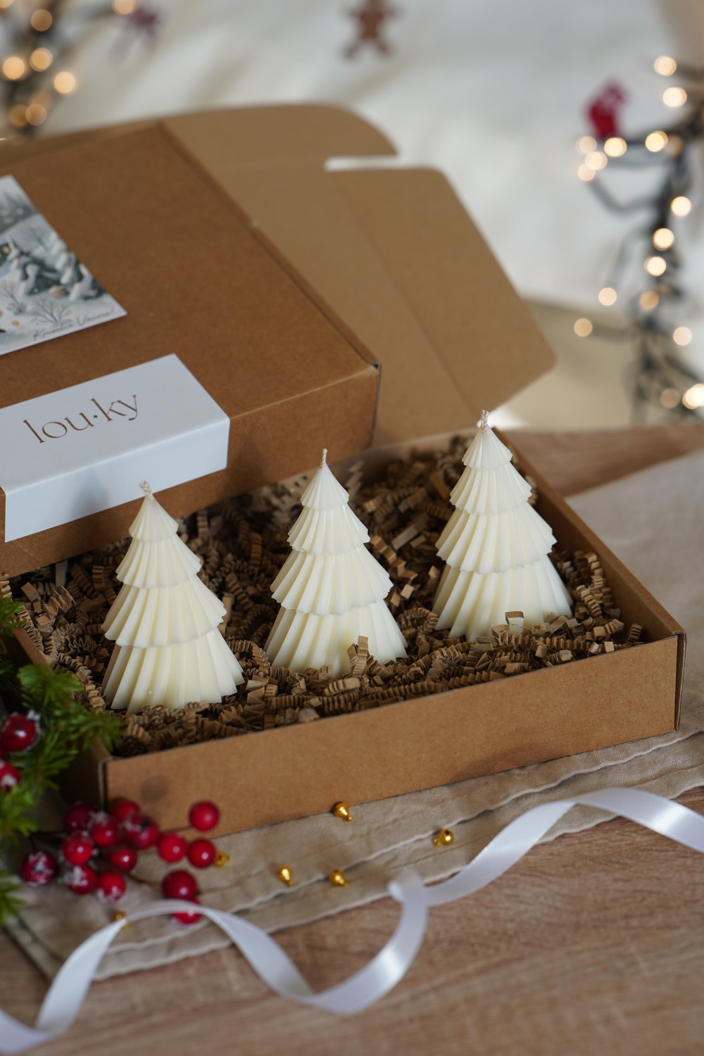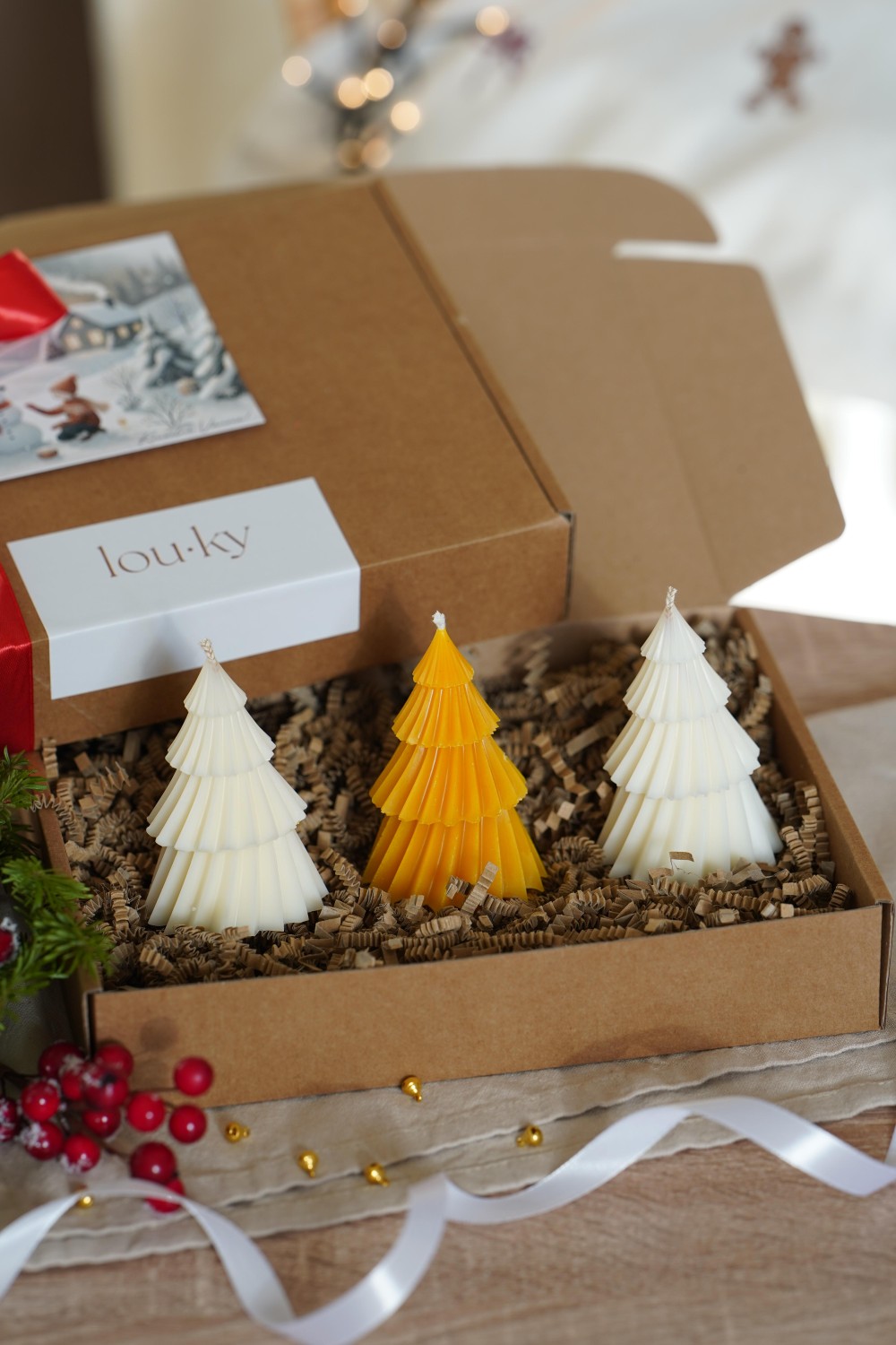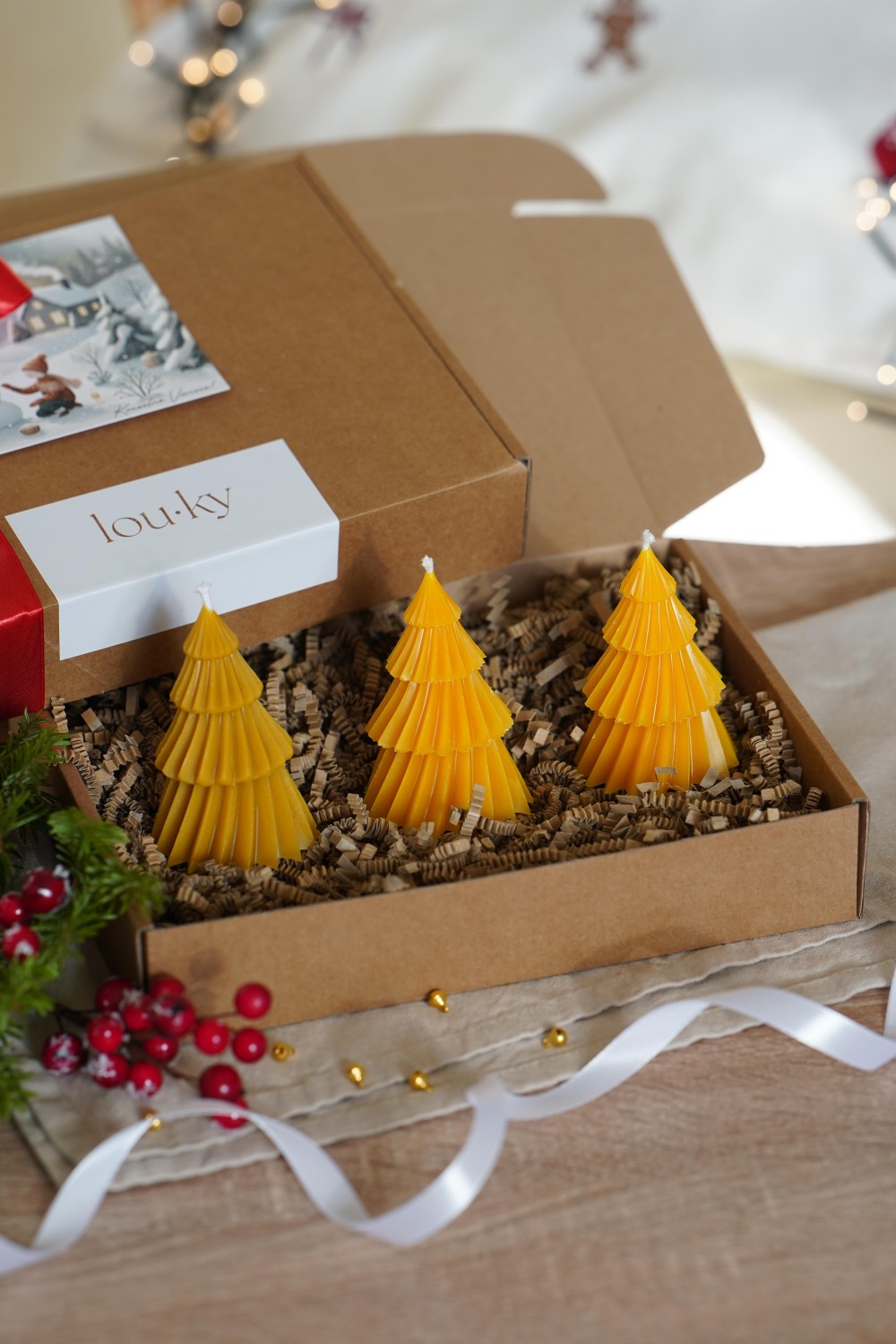 This elegant set of three small dancing tree candles is the perfect way to bring a touch of Christmas magic into your home. A beautiful addition to your festive table setting or a thoughtful handmade gift for your loved ones. Each candle is hand-poured and comes packed in a paper gift box tied with a ribbon (see photos). You can choose between pure soy wax or natural beeswax.