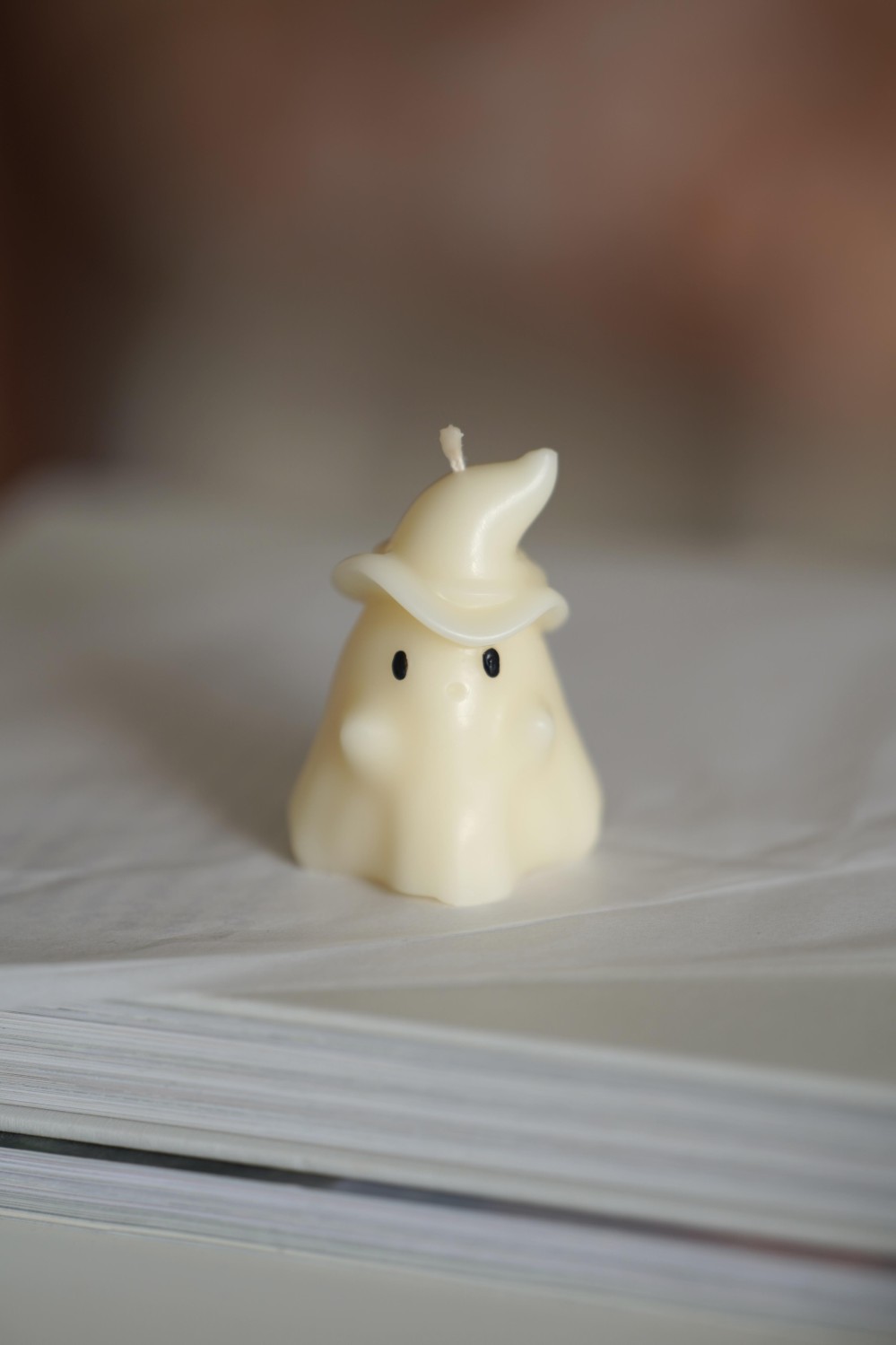 Ghost with hat: height 7 cm | width 5 cm | weight 58 g of white beeswax & soy wax | burn time: approx. 7 hours