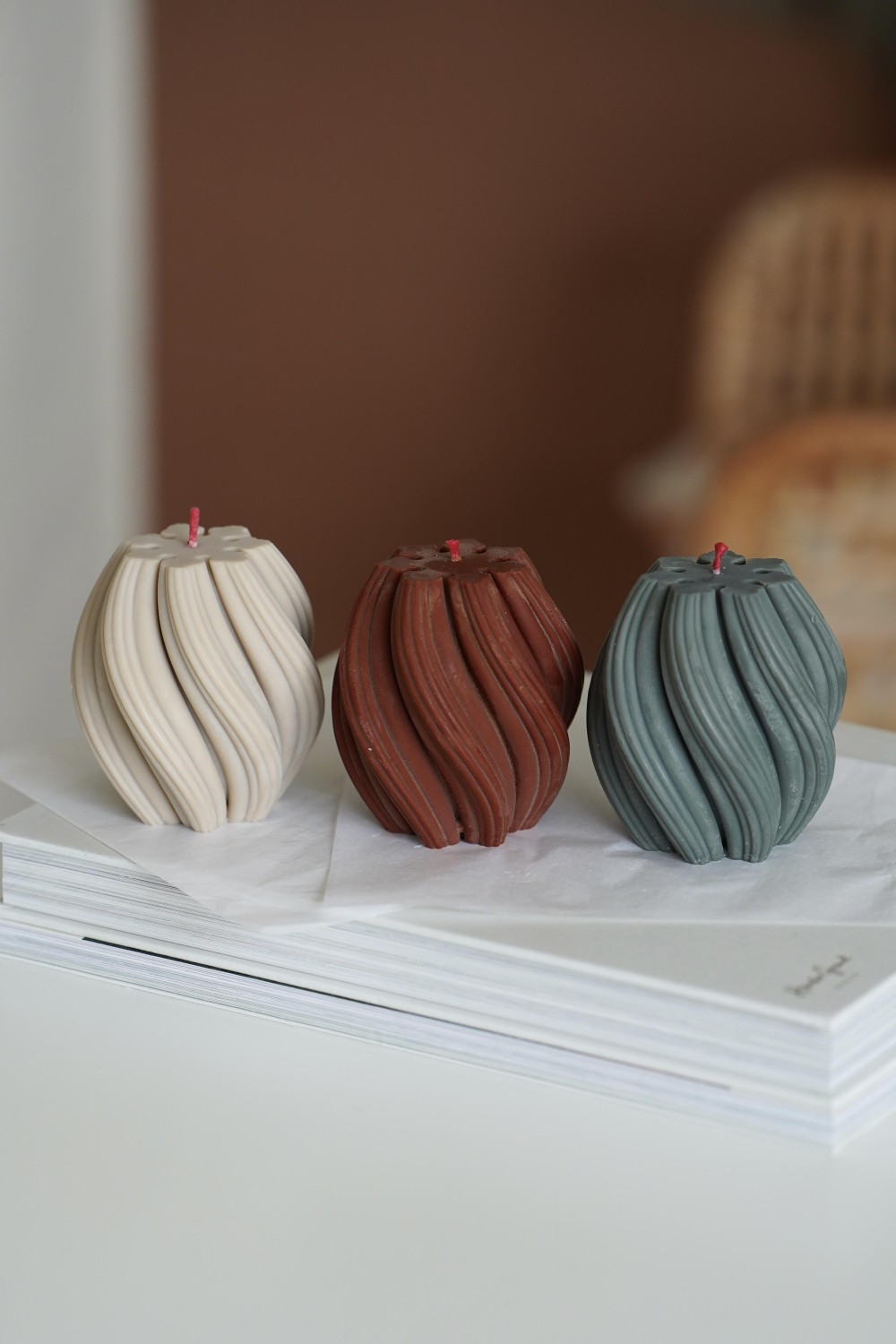 Aella belongs among our most beloved candles, now introduced in new, bold color shades. Its distinctive detail is the red cotton wick that perfectly complements the elegant twisted design. Hand-poured from soy wax, Aella brings a touch of sophistication and modern style to any interior.