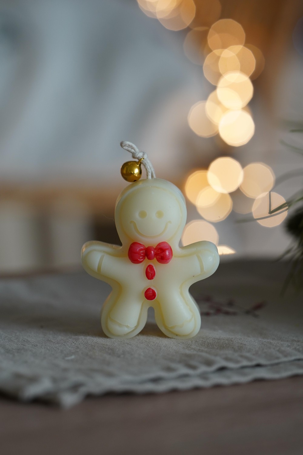 This charming Christmas candle in the shape of a cute gingerbread with a bow brings the magic of the holidays and the joy of little things into your home. Its simple yet gentle design in shades of white and light brown beautifully complements your festive decorations and creates a true Christmas atmosphere.
