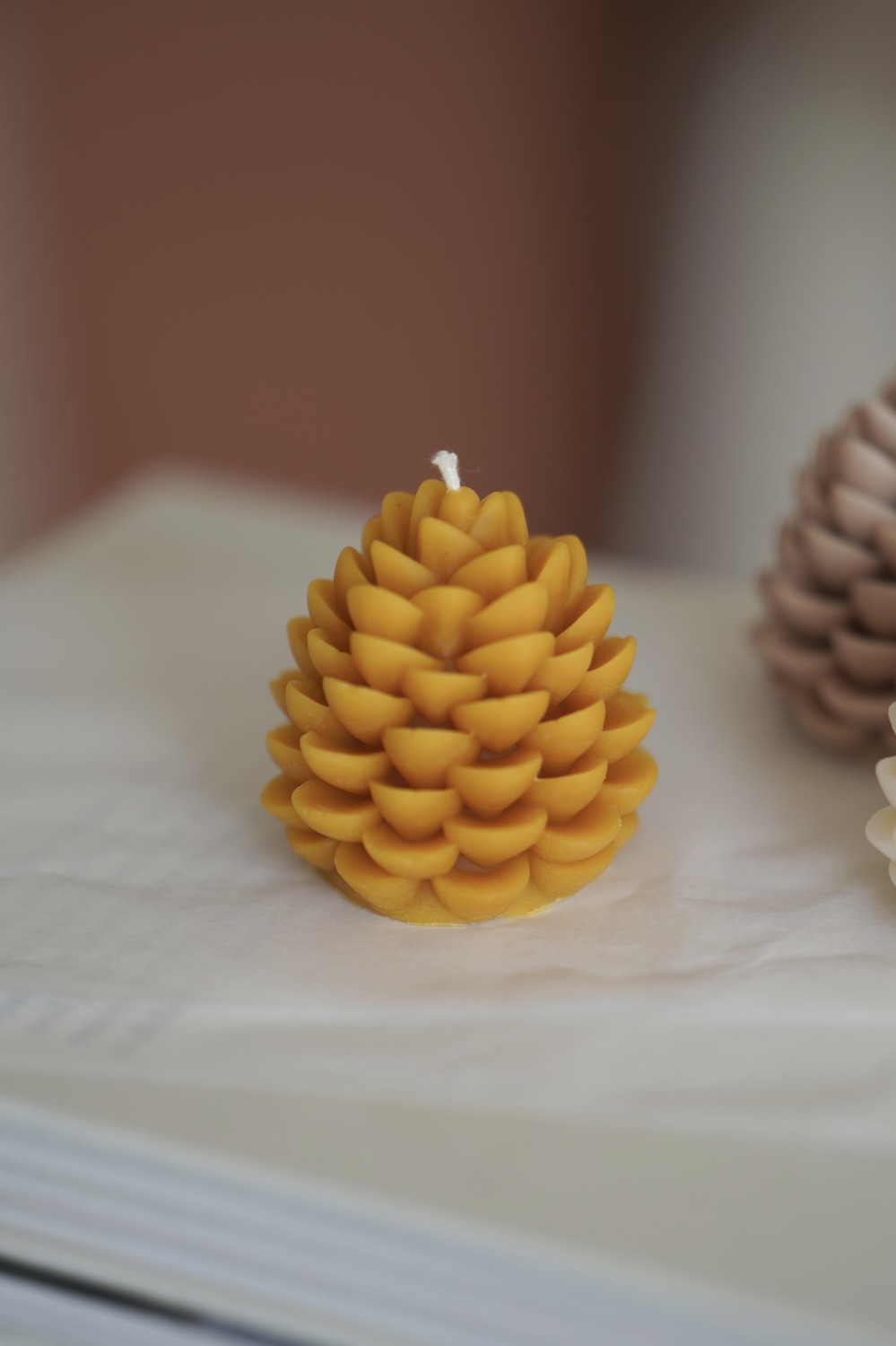 Discover the natural beauty of our hand-poured beeswax candle shaped like a pinecone. A timeless piece that brings warmth and elegance to both autumn and winter decor.