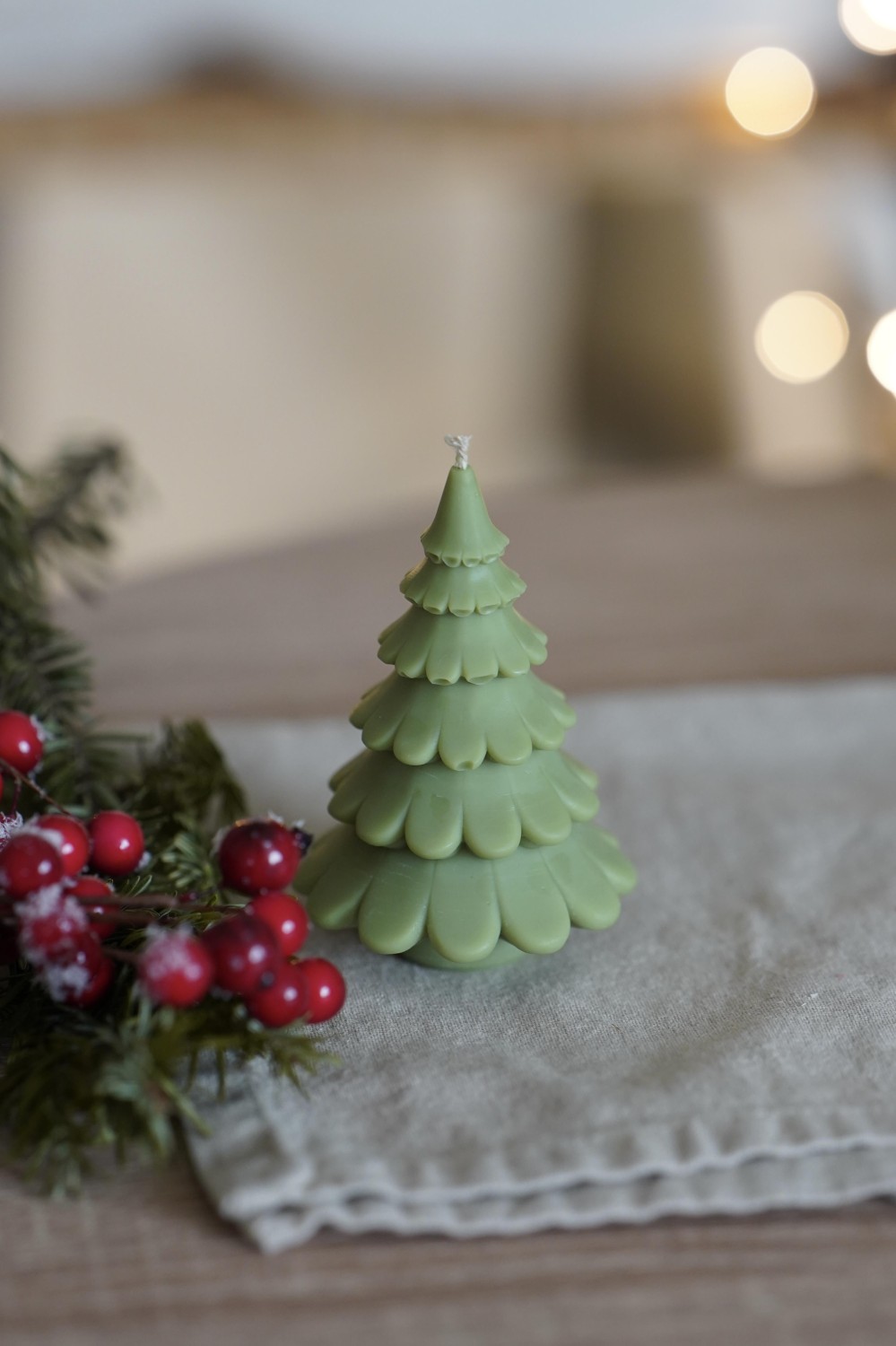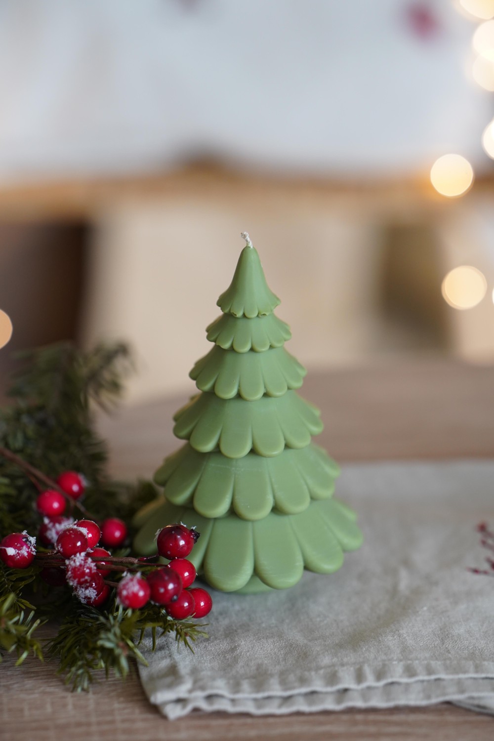Let yourself be enchanted by our Spruce candle shaped like a little Christmas tree. The candle is hand-poured from soy wax. It makes a beautiful gift for your loved ones or a lovely decoration for your festive table.