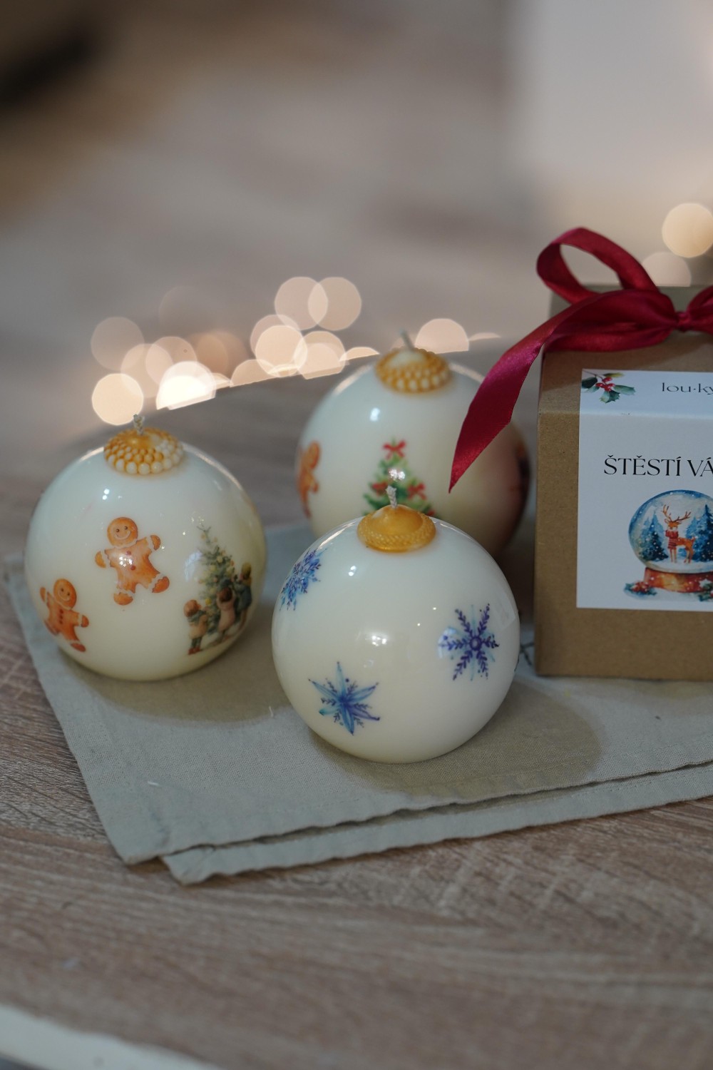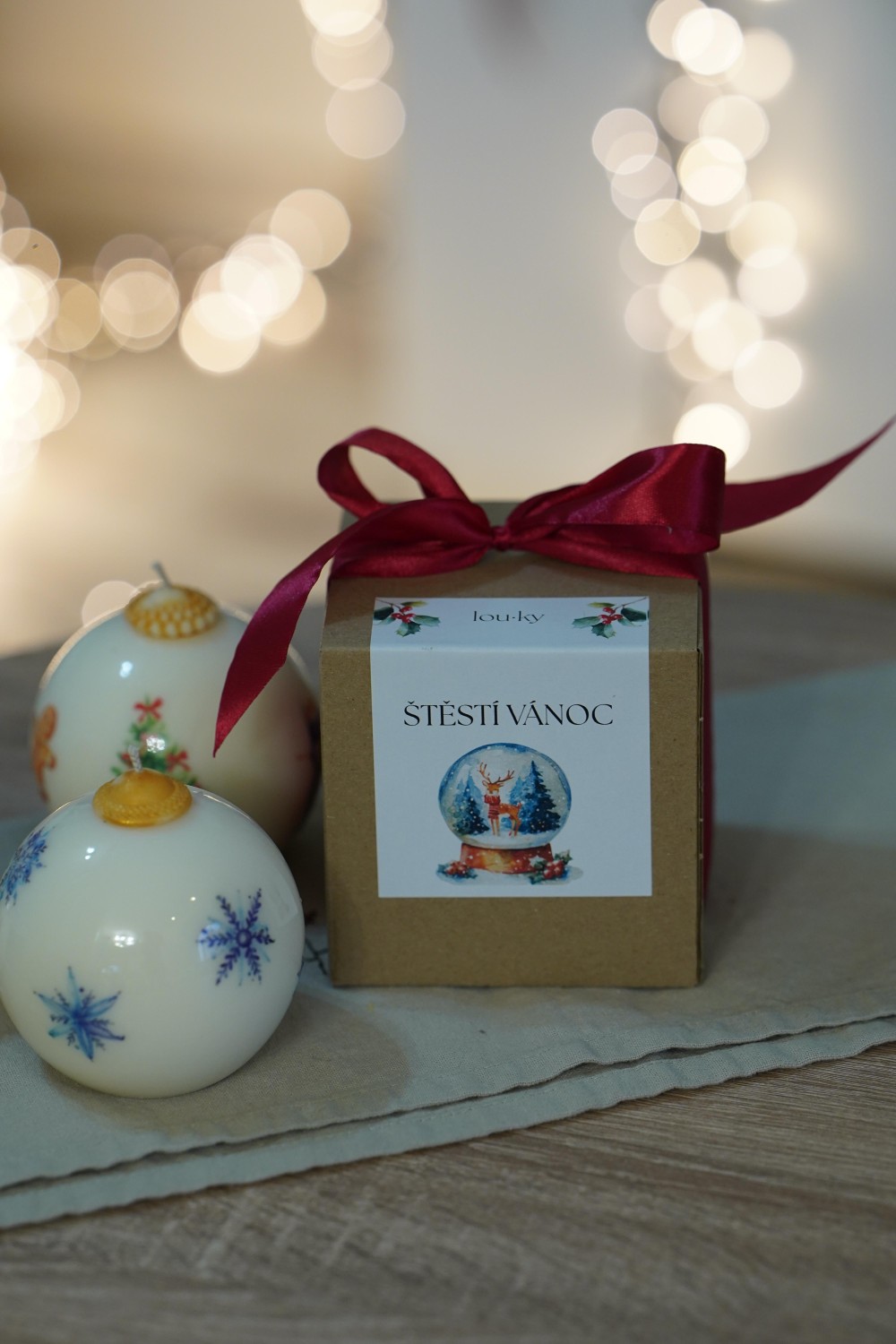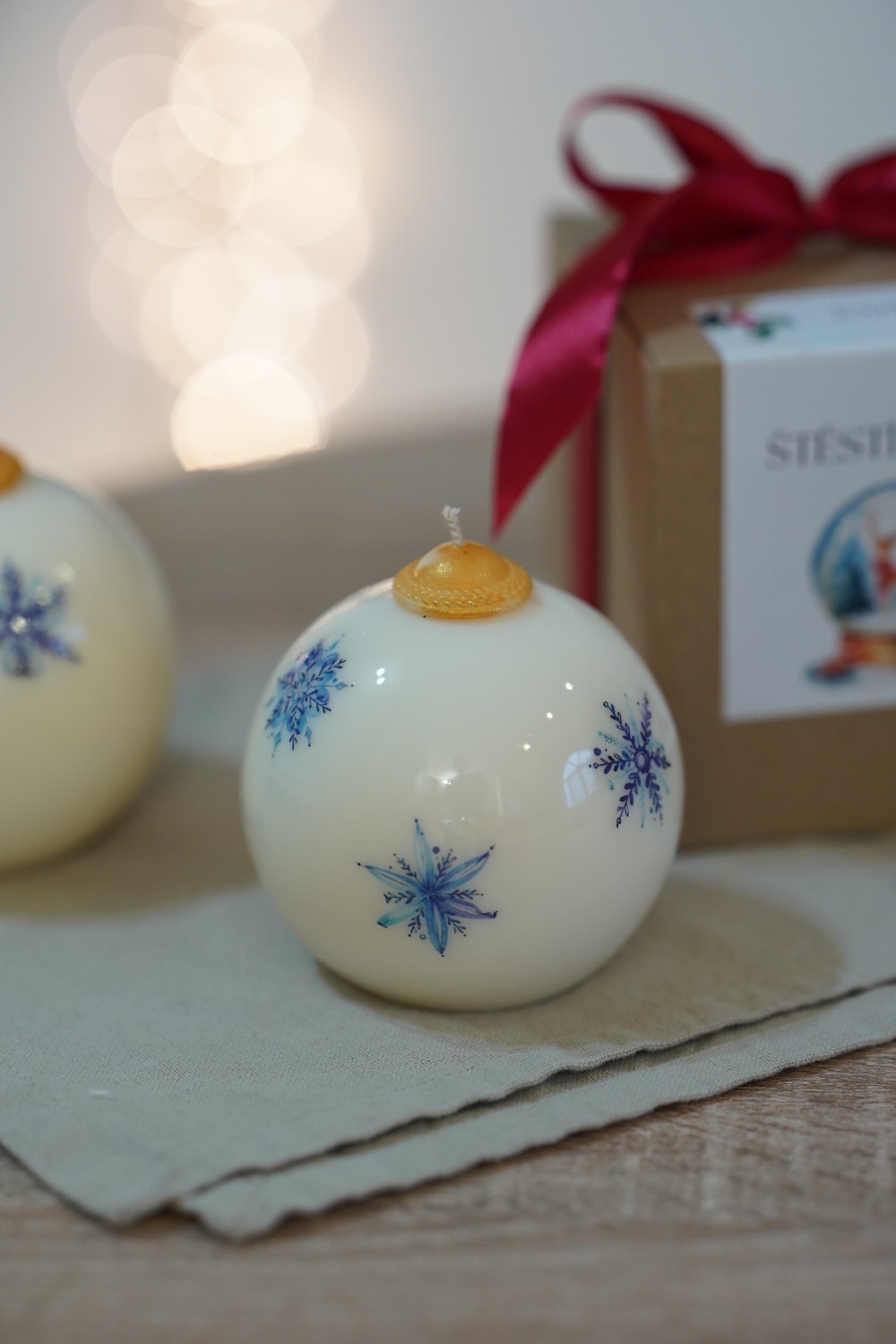 You can also choose a second design decorated with blue snowflakes, evoking quiet winter days, falling snow, and the pure, calm atmosphere of the Christmas season. The two candle designs beautifully complement each other — one warm and playful, the other soft and dreamy. The choice is entirely yours.