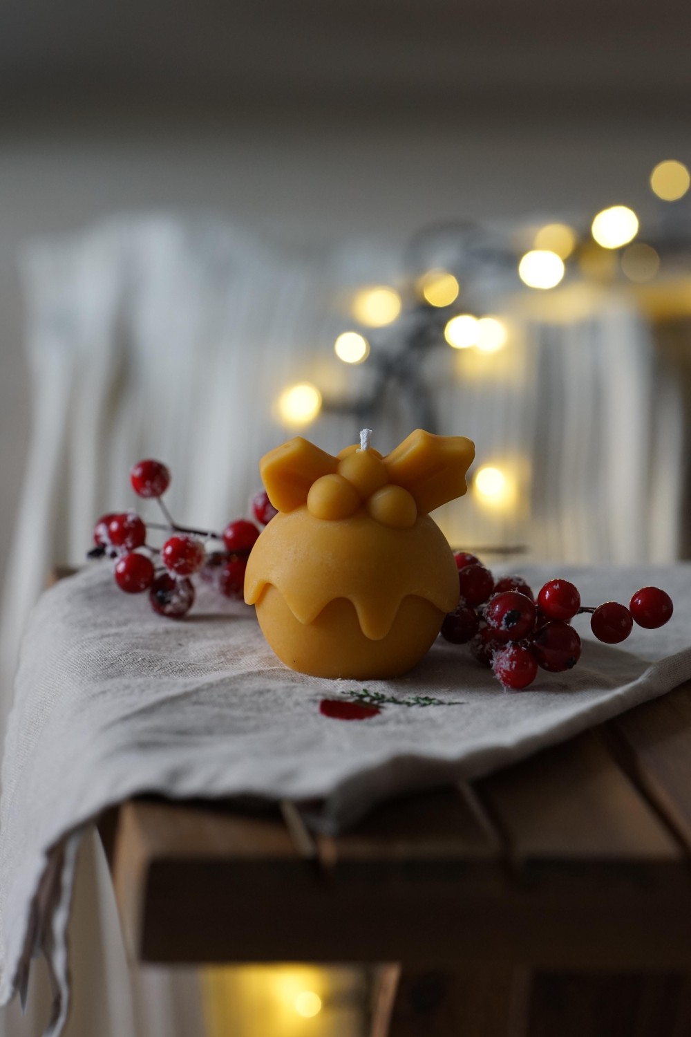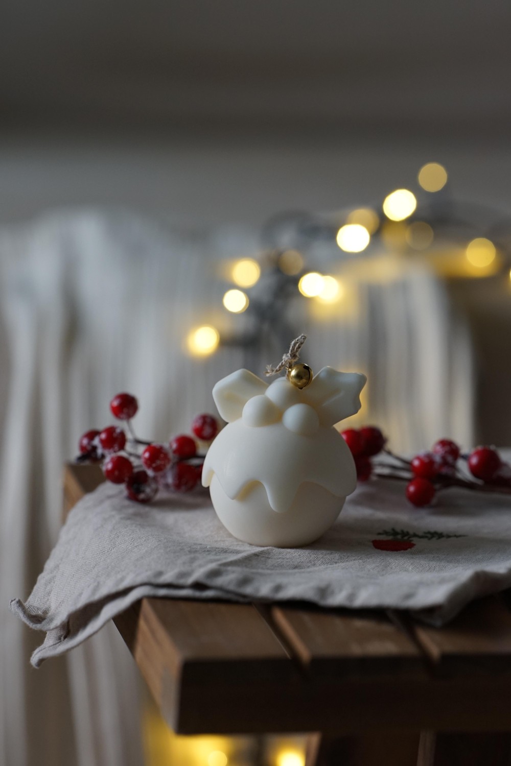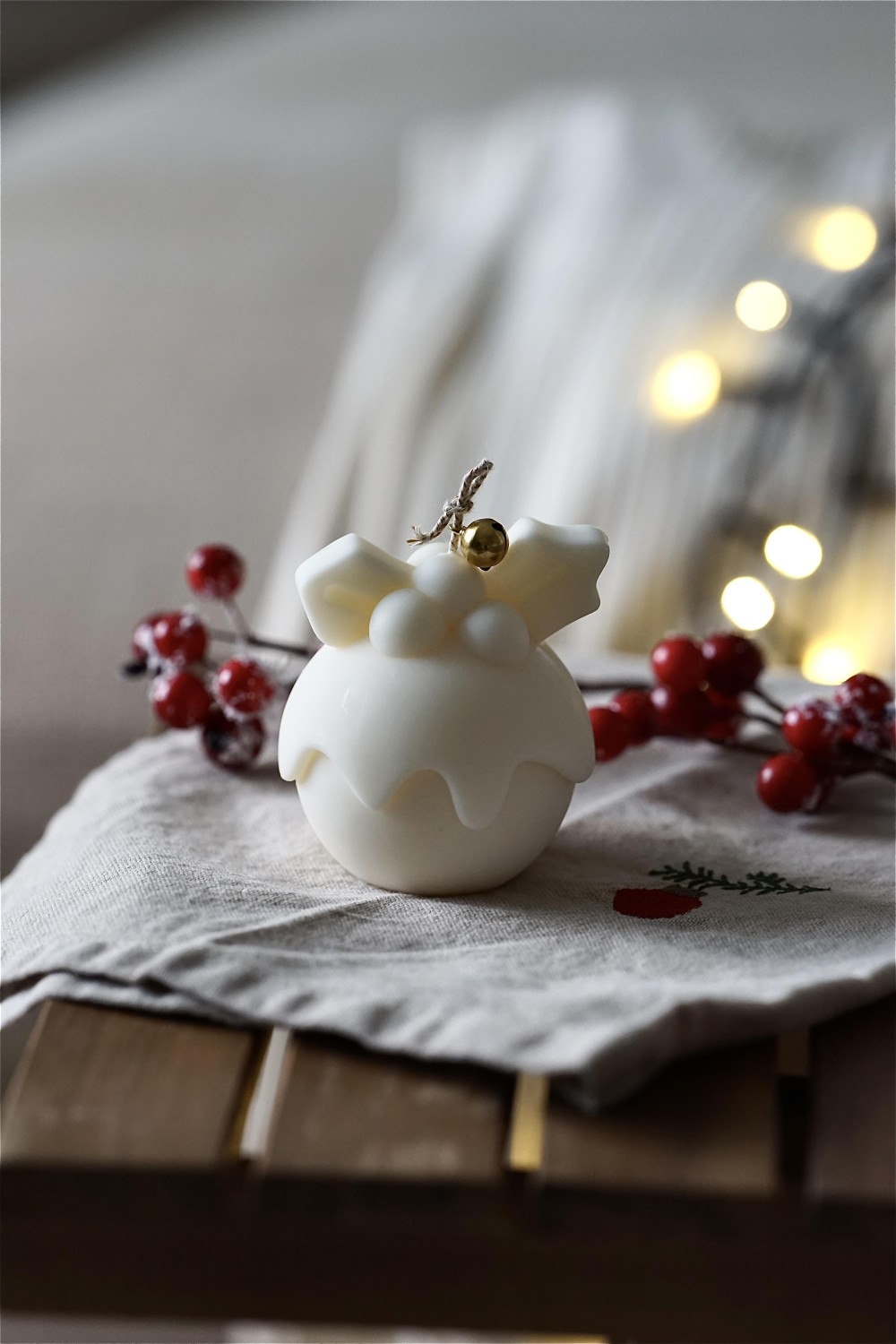 Let yourself be enchanted by our hand-poured candle shaped like a traditional Christmas pudding. Made from pure soy or natural Czech beeswax, this charming candle brings a touch of sweet holiday nostalgia and fills your home with cozy festive warmth.